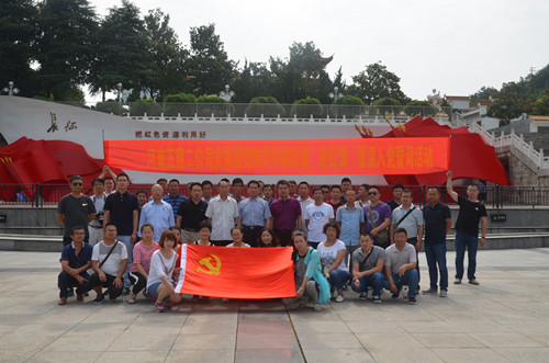 為慶祝中國共產(chǎn)黨成立96周年,激勵公司廣大黨員繼承和發(fā)揚黨的光榮傳統(tǒng)和優(yōu)良作風,推進“兩學一做”學習教育常態(tài)化制度化,6月23日,公司黨委組織全體黨員(含4名離退休黨員代表)前往紅色旅游區(qū)新縣舉辦了一次唱紅歌、走紅旅、重溫入黨誓詞及捐款獻愛心活動,活動由副總經(jīng)理余雷主持。 在鄂豫皖蘇區(qū)首府革命博物館,公司黨委書記朱明友指出:“在建黨96周年來臨前夕,我們來到新縣這個革命圣地,學習瞻仰先烈們的英雄事跡,接受愛國主義教育,是公司持續(xù)深入開展'兩學一做'的實踐活動,在此,我要求我們?nèi)w黨員干部,在工作中要發(fā)揮先鋒模范作用,團結(jié)帶領全體員工努力拼搏,以優(yōu)異的成績迎接黨的十九大勝利召開!”隨后,面對鮮紅的黨旗,全體人員在副總經(jīng)理吳坤的帶領下,舉起右手重溫了入黨誓詞。