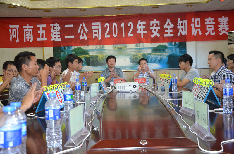 6月19日下午,公司在二樓會(huì)議室舉行了安全生產(chǎn)知識(shí)競(jìng)賽。市總工會(huì)生產(chǎn)部部長(zhǎng)劉明俊、公司黨委書(shū)記、工會(huì)主席朱明友、副總經(jīng)理吳建功及各項(xiàng)目部代表共有50余人參加了此次知識(shí)競(jìng)賽。
