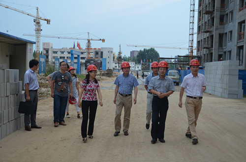 在了解了工程目前的建設(shè)情況后,張富治副市長對香榭華庭項目部建設(shè)工程全體職工進行了親切的問候,并表達了崇高的敬意,同時希望施工人員在戰(zhàn)高溫、斗酷暑、保證施工進度的同時,加強防暑降溫和安全措施,確保高溫天氣廣大職工和農(nóng)民工的身體健康和生命安全。