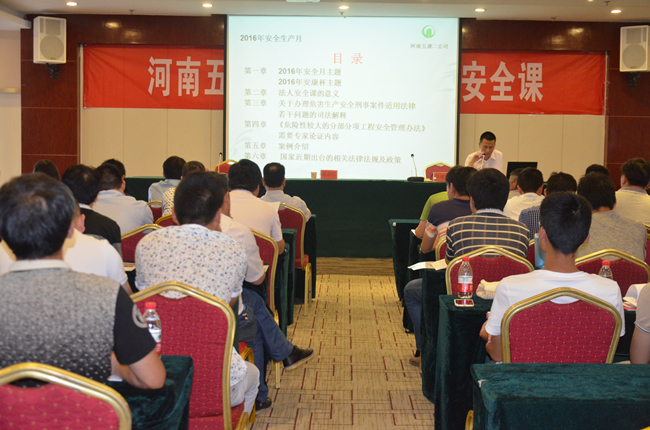 6月17日下午,公司在開元中州酒店9樓會議室舉行了2016年法人安全課培訓(xùn),公司高層領(lǐng)導(dǎo)及各部室負責(zé)人、子公司負責(zé)人及各項目部項目經(jīng)理、技術(shù)負責(zé)人、專職安全管理人員等一百余人參加了此次培訓(xùn),會議由工程部部長吳善艷主持。
