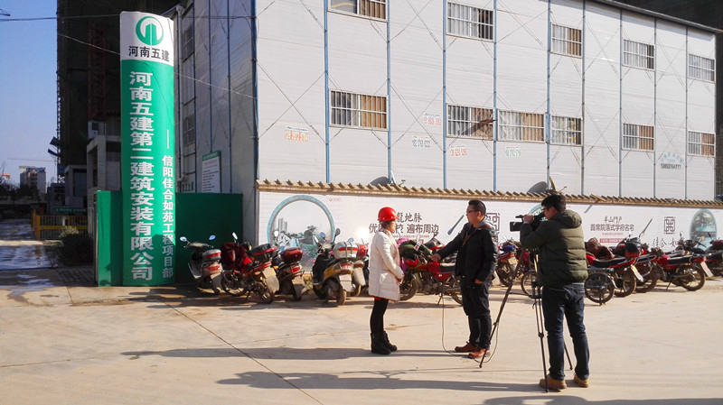 信陽市大氣辦于12月25日邀請(qǐng)信陽市電視臺(tái),在公司佳合如苑項(xiàng)目部對(duì)公司關(guān)于揚(yáng)塵治理采取的措施及成效,進(jìn)行了專項(xiàng)采訪報(bào)道,公司副總工、工程部部長(zhǎng)吳善艷接受了此次采訪。