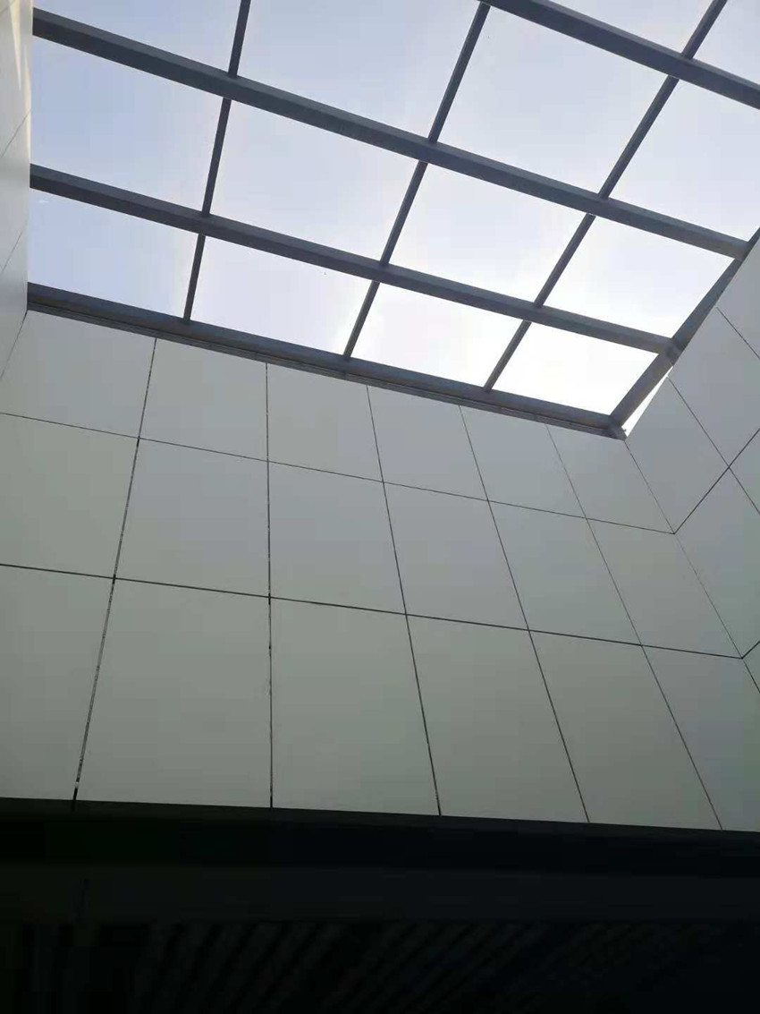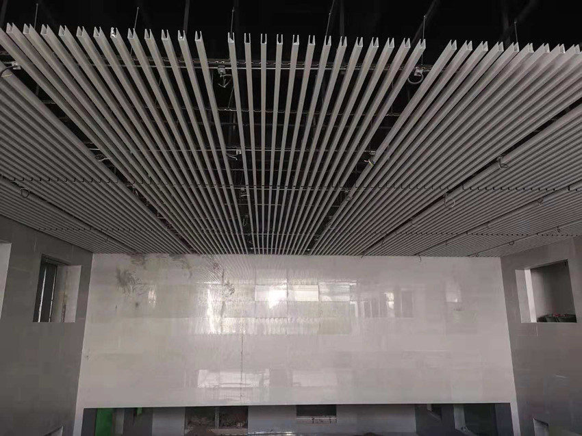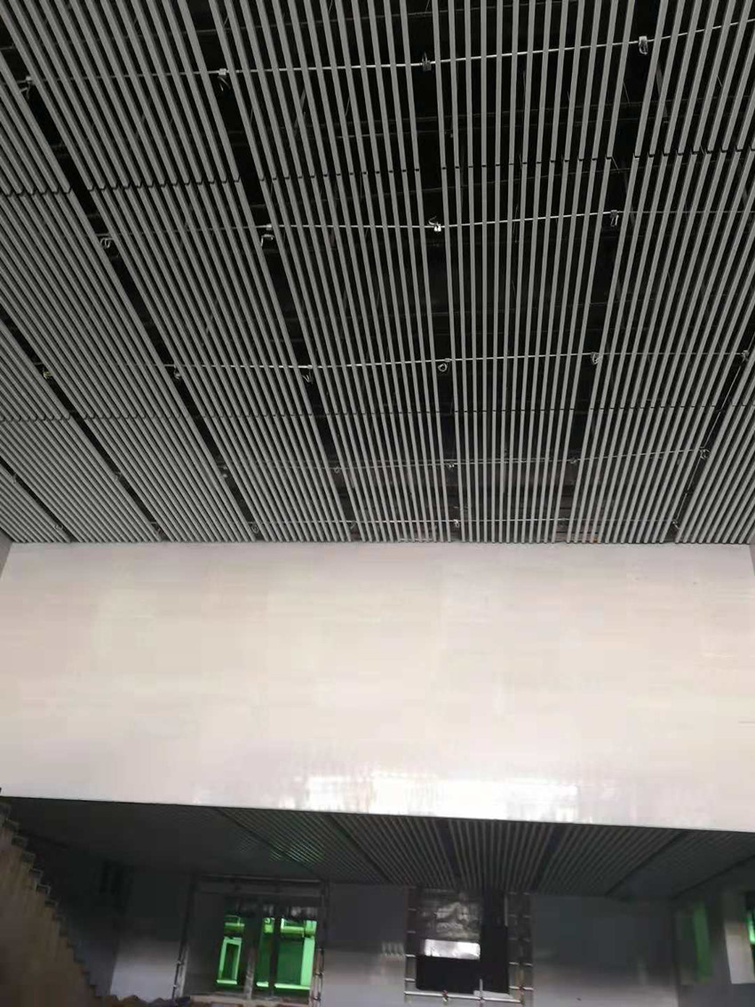 (2)吊頂班組,南北下沉廣場鋁方通吊頂全部安裝完成,南北落客區(qū)鋁板吊頂及包邊完成80%,鋁方通吊頂完成30%。